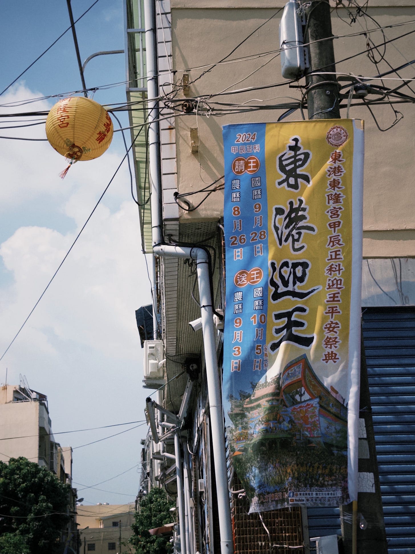 東港迎王前夕,剛好有事經過。雖然沒特地前往東隆宮,只是在東港橋下區域走走,但已經能感受到濃厚的節慶氛圍。鎮上主要幹道兩側掛滿了迎王的燈籠,大小商家也都掛起紅色、與迎王有關的布條,或貼上祈求平安的紙張,到處都瀰漫著喜慶的氣息。這幾年,隨著許多年輕人返鄉開店,與迎王相關的文創商品也隨處可見,為這三年一次的慶典注入新的活力。